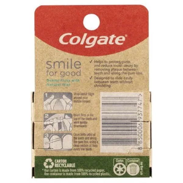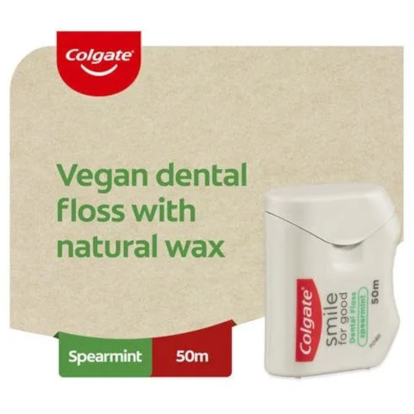 Colgate Smile for Good dental floss is made with natural, vegan wax; designed to slide easily between teeth without shredding.